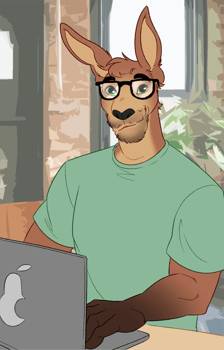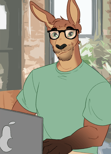 runneroo (he/him) is a writer with some modest graphic design skills based out of Colorado, USA, and he enjoys doughnuts and decaf coffee. When he's not torturing himself with long-distance running or hiking in the mountains, he's usually writing something smutty. On Your Day Off is his first visual novel project, and you can read more of his raunchy writing in his Furaffinity gallery and on Sofurry.