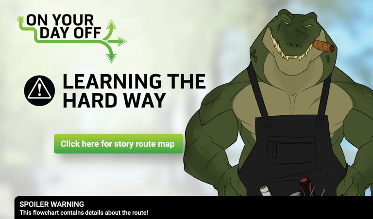 On Your Day Off is an 18+ visual novel by runneroo and ninetht. All rights reserved. Thanks for playing, we hope you enjoy the game!