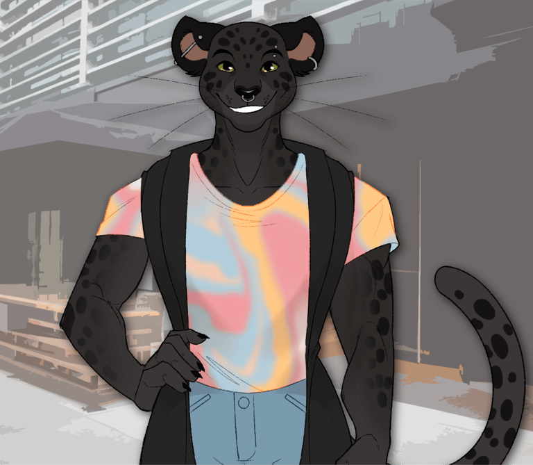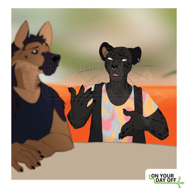 Originally from Lowmont, Nisha moved to San Lugos almost five years prior to the events of On Your Day Off. A visual artist, Nisha works with various media, although their favorite medium is large-scale screen printing. Nisha's parents and two sisters still live in Lowmont; Nisha grew up in a more traditional household and felt they had to hide their non-binary gender identity and pansexuality. When they came out to their family, their father rejected them, although their mother and two sisters eventually came around to accepting them, and Nisha still keeps in touch with them. Nisha lives with their partner, Danielle, and makes a living off of selling their art and doing commissions for clients; they recently were given the opportunity to create an entire exhibit at one of the local galleries, and Nisha is excited to share their work with a larger audience.
