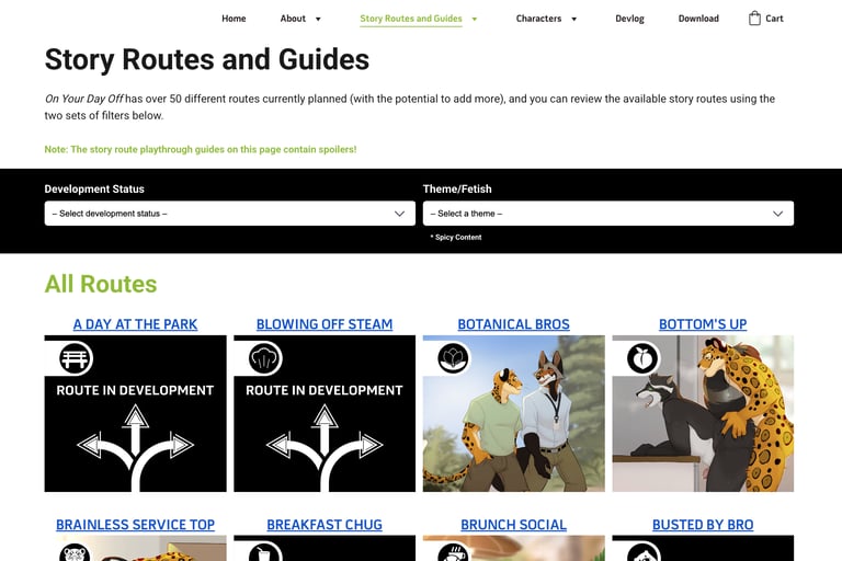 This page contains a comprehensive listing of the story routes in On Your Day Off. You can filter the routes on this page based on: