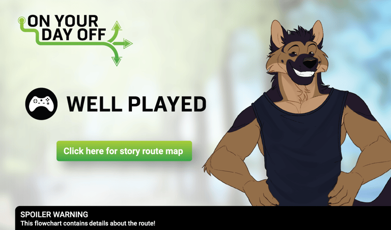 On Your Day Off is an 18+ visual novel by runneroo and ninetht. All rights reserved. Thanks for playing, we hope you enjoy the game!
